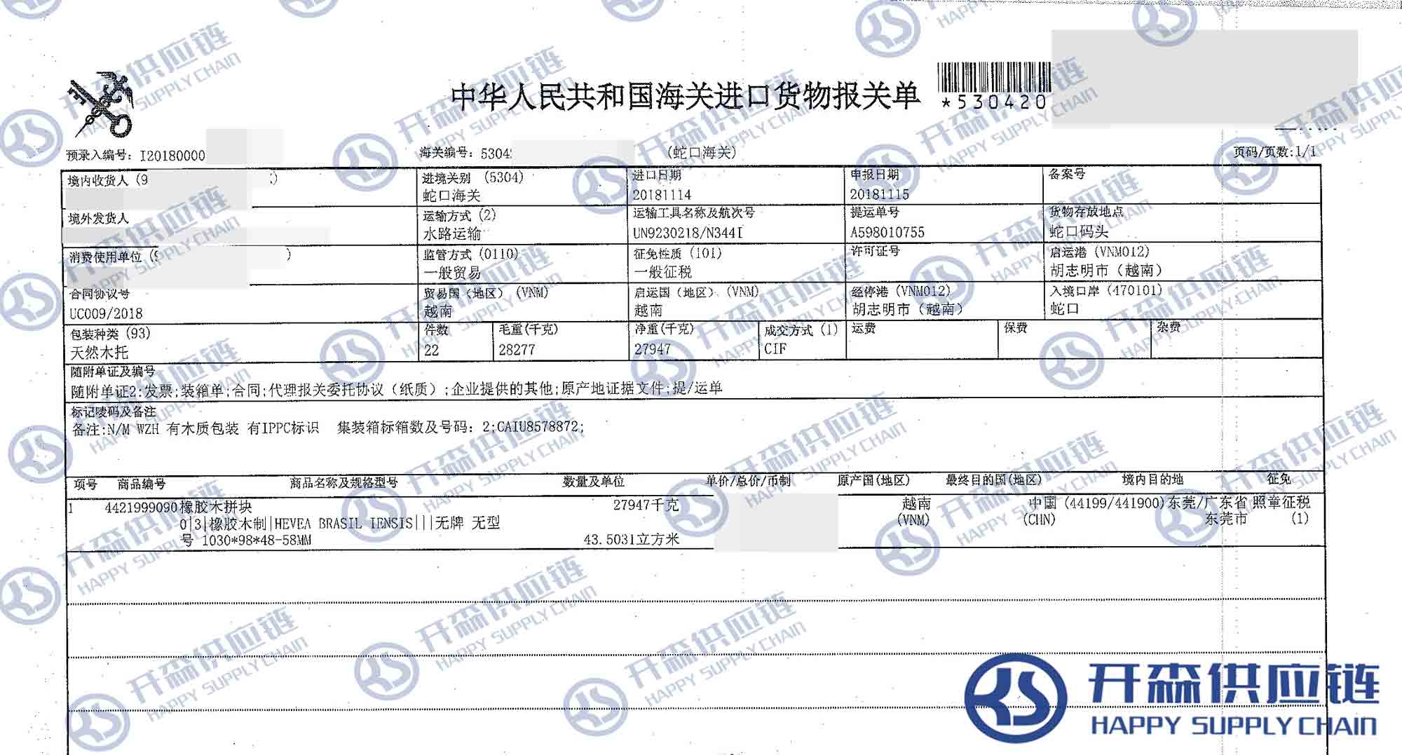 一、越南橡膠木拼塊家具進(jìn)口報(bào)關(guān)代理案例詳情