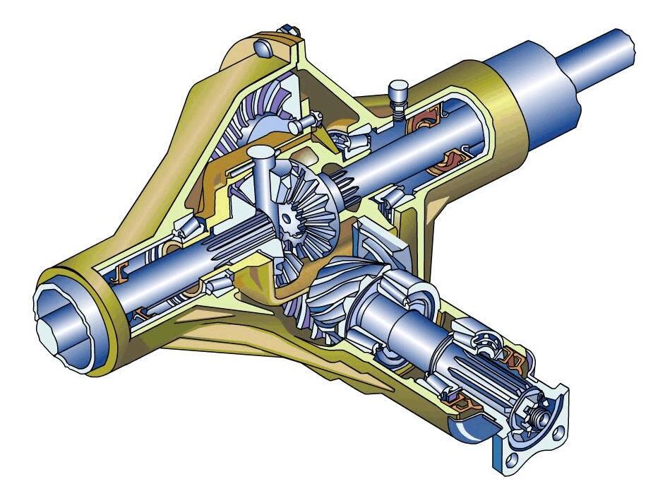驅(qū)動橋是位于傳動系末端能改變來自變速器的轉(zhuǎn)速和轉(zhuǎn)矩,并將它們傳遞給驅(qū)動輪的機(jī)構(gòu)。驅(qū)動橋一般由主減速器、差速器、車輪傳動裝置和驅(qū)動橋殼等組成,轉(zhuǎn)向驅(qū)動橋還有等速萬向節(jié)。另外,驅(qū)動橋還要承受作用于路面和車架或車身之間的垂直力,縱向力和橫向力,以及制動力矩和反作用力。