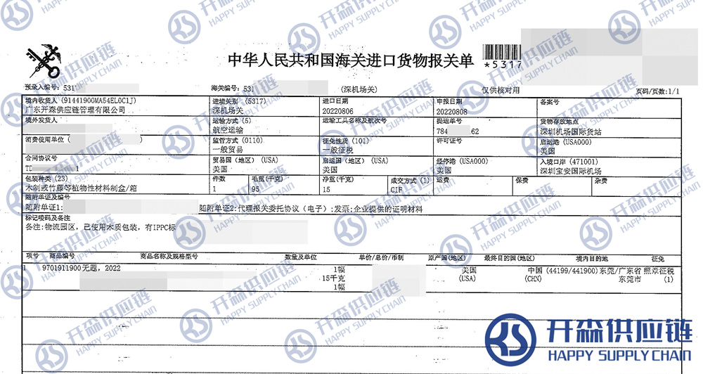【本文結語】 上述就是美國油畫進口報關清關代理服務案例【經典案例】的全部內容,希望能對您有所幫助,如有油畫進口報關上任何疑問及問題可隨時在線聯系我們或撥打 18002611553,開森供應鏈擁有豐富的油畫進口報關操作經驗及案例,10余年進口經驗為您所用,各類進口疑難都能為您一一解答及協助快速處理解決!