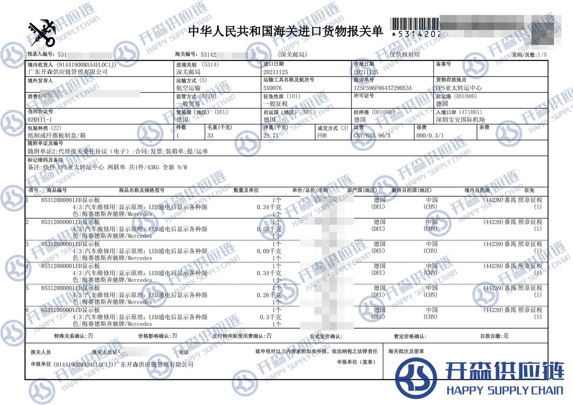 【導讀】您正在閱讀的是關于德國奔馳顯示板汽車配件進口報關代理【進口案例】的內容,本文由開森汽車配件進口報關代理小編整理編寫;