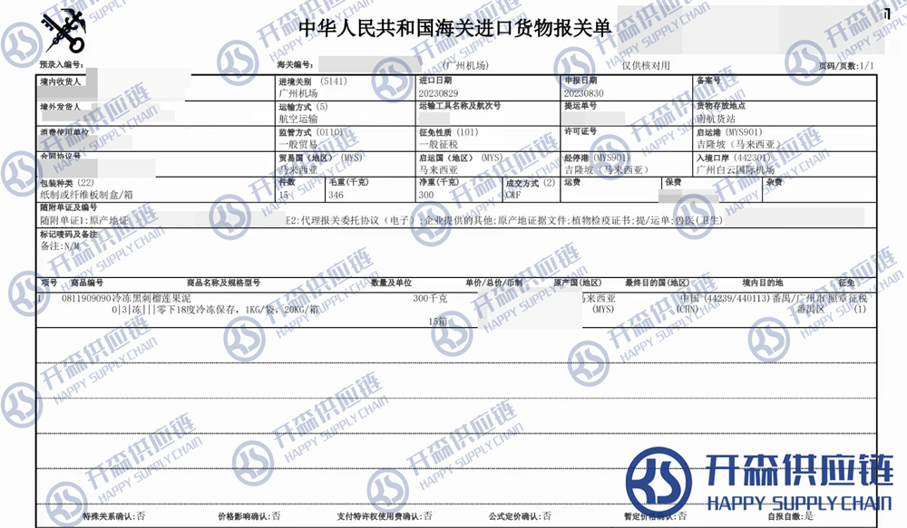 【本文結語】 上述就是馬來西亞冷凍榴蓮果泥進口報關代理服務【清關案例】的全部內容,希望能對您有所幫助,如有榴蓮進口報關上任何疑問及問題可隨時在線聯(lián)系我們或撥打 18002611553,開森供應鏈擁有豐富的榴蓮進口報關操作經驗及案例,10余年進口經驗為您所用,各類進口疑難都能為您一一解答及協(xié)助快速處理解決!